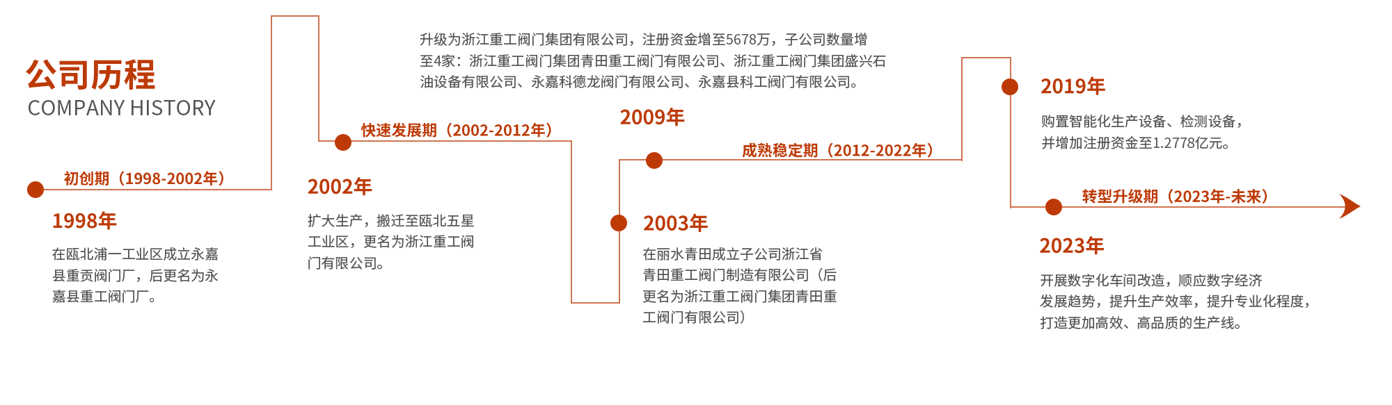 浙江重工閥門集團始創(chuàng)于1999年,總部座落在溫州永嘉甌北五星工業(yè)區(qū),總占地面積23800多平方,注冊資金1.2778億元,集團旗下擁有5家子公司,其中全資子公司3家,控股公司2家。公司采用先進的管理模式,實行產品專業(yè)化分類生產和銷售,提高產品質量。主要生產基地分布在:浙江溫州、麗水和青田等地,是一家集產品研發(fā)、設計、制造與銷售為一體的專業(yè)閥門企業(yè),在溫州甌北總部設立:辦公中心、科研中心、銷售中心、質控中心和全過程網絡管理中心……